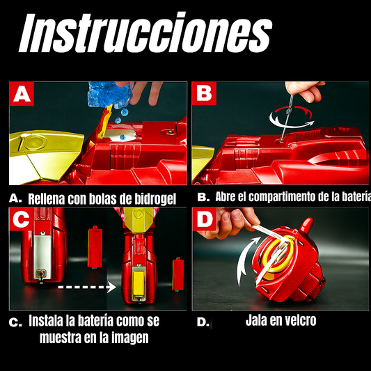 🦾 Juguete Iron Man® Importado original – Guantelete Lanzador de Bolas de Hidrogel. (oferta valida por 30 min)