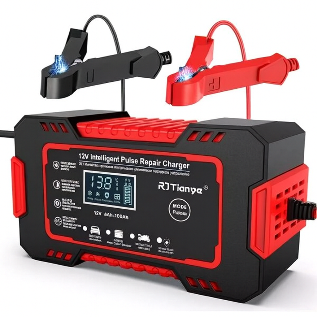 🔋 Cargador Inteligente de Batería 12V | Hasta 100Ah – Automático con Reparación de Pulsos