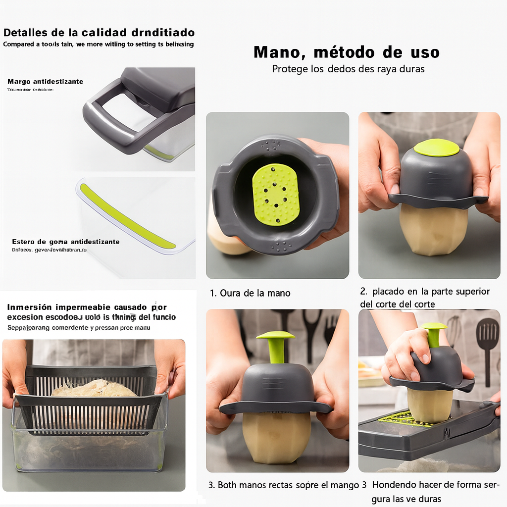 🔪 Hojas Intercambiables de Acero Inoxidable: Corta, rebana y pica todo tipo de verduras y frutas con precisión.