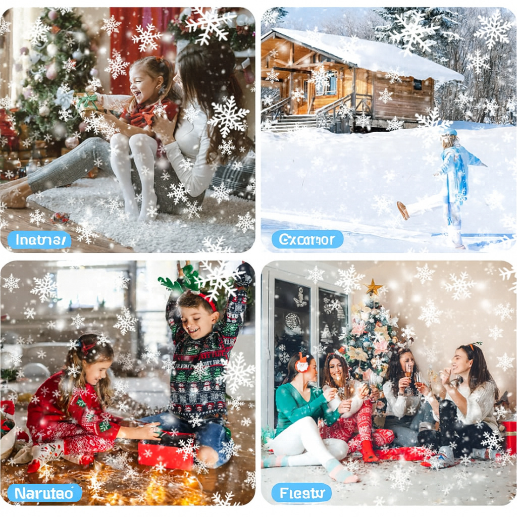 Los copos blancos se proyectan de manera amplia, envolviendo tu casa en una atmósfera romántica y festiva. 🎅❄️