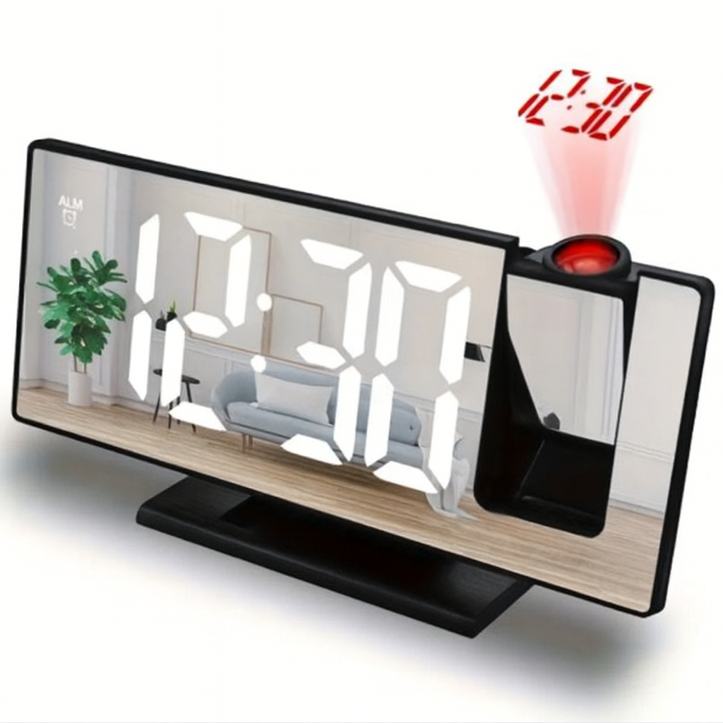 El Reloj Snooze Mirror combina un estilo moderno con funciones prácticas para tu dormitorio u oficina. Su pantalla LED de gran tamaño, con efecto espejo, permite ver la hora claramente tanto de día como de noche, y su diseño minimalista lo convierte en un accesorio decorativo elegante.
